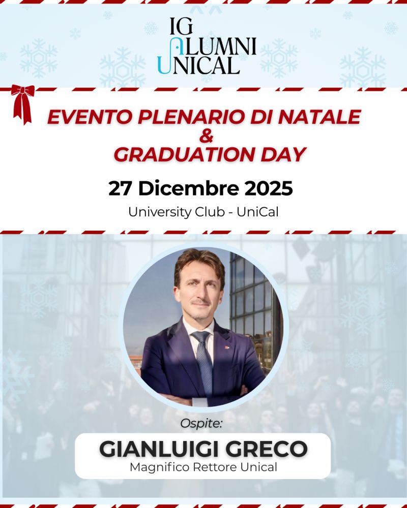 University Club (Cubo 25) UNICAL università della calabria University Club, RendeSiamo orgogliosi di annunciare che al consueto evento plenario di Natale che si terrà il prossimo 27 dicembre avremo l'onore di ospitare il Magnifico Rettore dell'Università della Calabria, Prof. Gianluigi Greco. La sua presenza rappresenta il legame profondo tra l'UniCal e la sua comunità di Alumni, un ponte tra il percorso accademico che ci ha […]